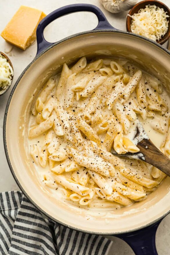 Pasta Water: Don’t skip the step to reserve the pasta water! If you don’t, the starch in the water that comes from cooking the pasta won’t help keep the sauce silky, creamy, and perfectly smooth.
